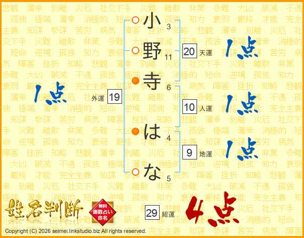 小野寺はなさんの総運は29画の4点!