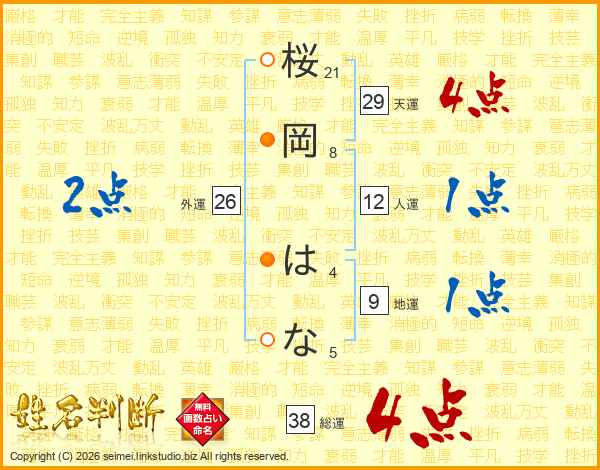 桜岡はなさんの総運は38画の4点!