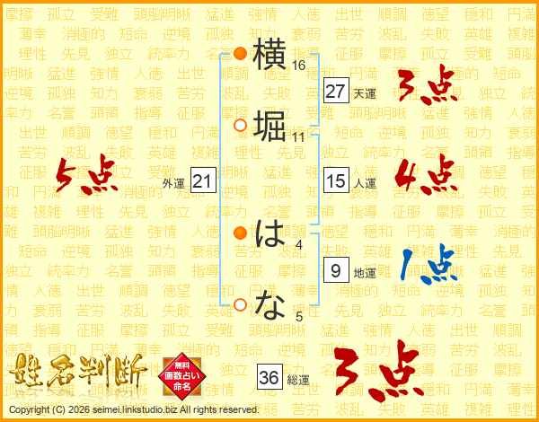 横堀はなさんの総運は36画の3点!