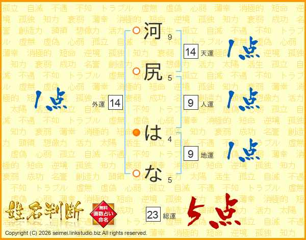 河尻はなさんの外運は14画の1点!