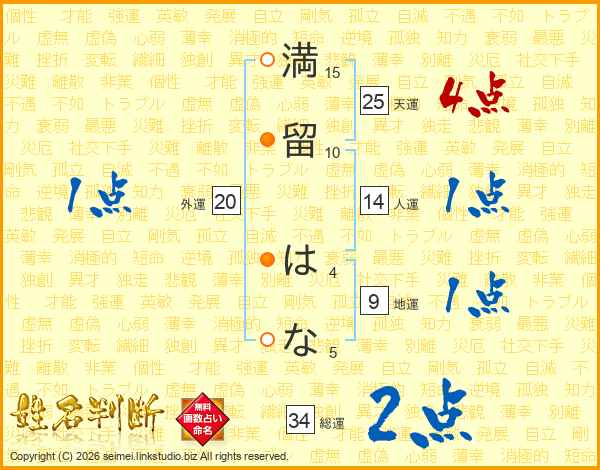 満留はなさんの天運は25画の4点!