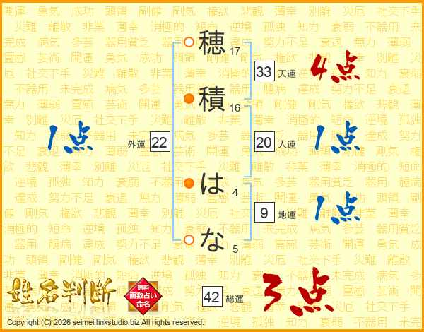 穂積はなさんの天運は33画の4点!
