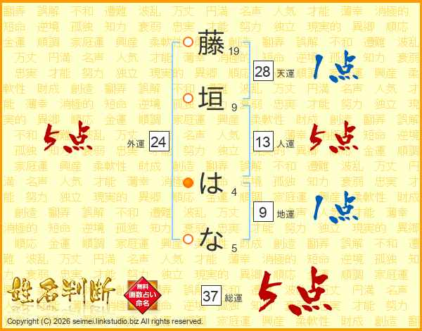 藤垣はなさんの総運は37画の5点!