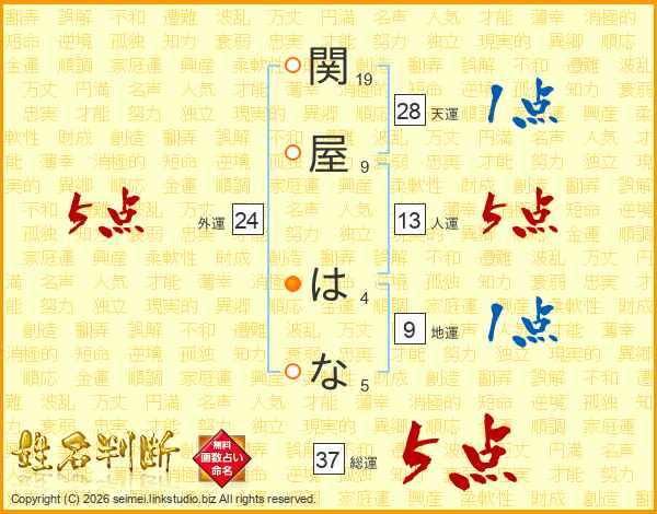 関屋はなさんの総運は37画の5点!
