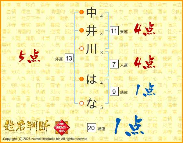 中井川はなさんの天運は11画の4点!