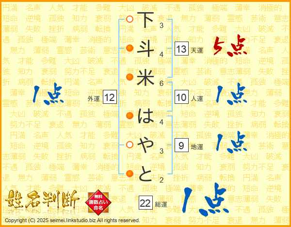 下(3画)斗(4画)米(6画) は(4画)や(3画)と(2画)