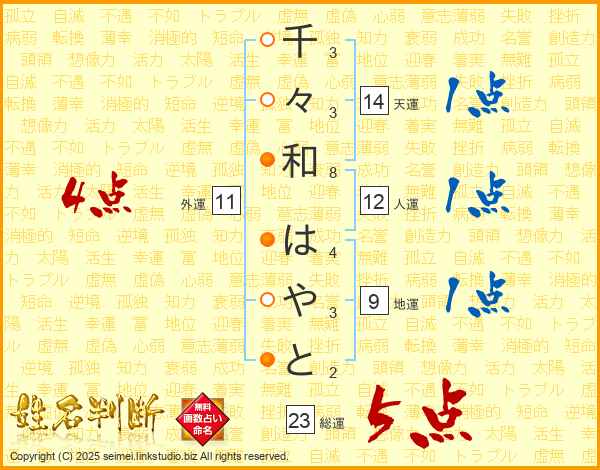 千(3画)々(3画)和(8画) は(4画)や(3画)と(2画)