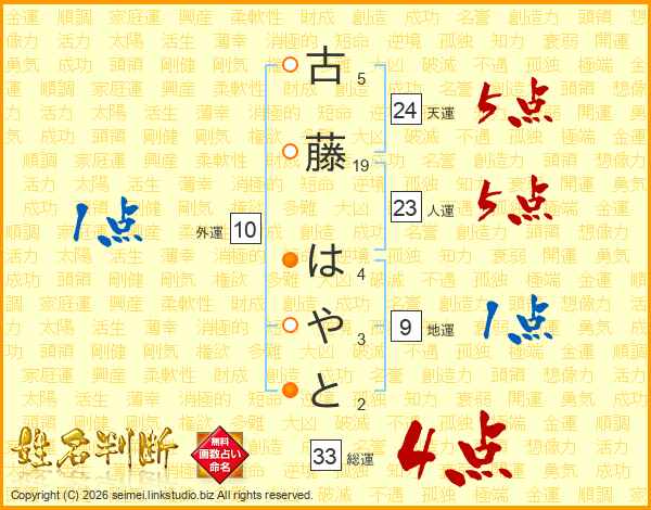 古(5画)藤(19画) は(4画)や(3画)と(2画)