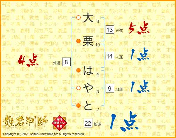 大栗はやとさんの天運は13画の5点!