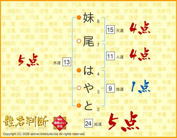 妹尾はやとさんの外運は13画の5点!