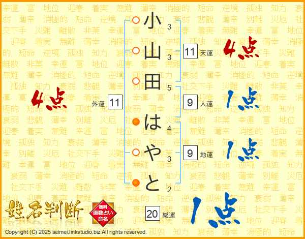 小山田はやとさんの天運は11画の4点!