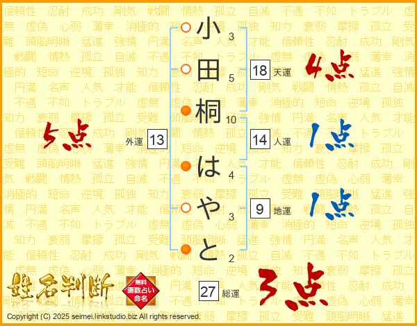 小田桐はやとさんの総運は27画の3点!