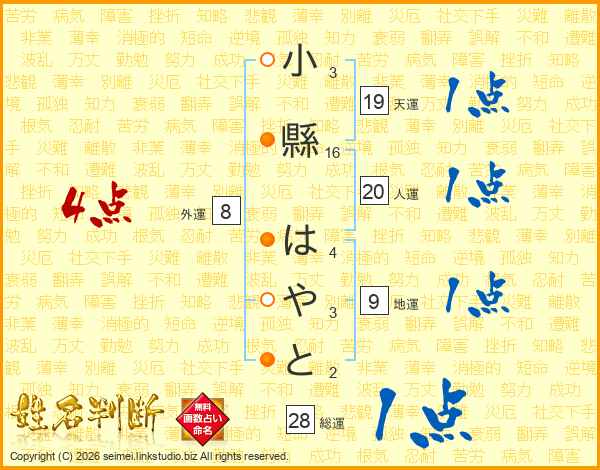 小縣はやとさんの総運は28画の1点!
