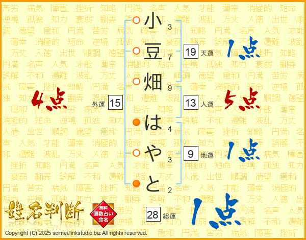 小豆畑はやとさんの総運は28画の1点!