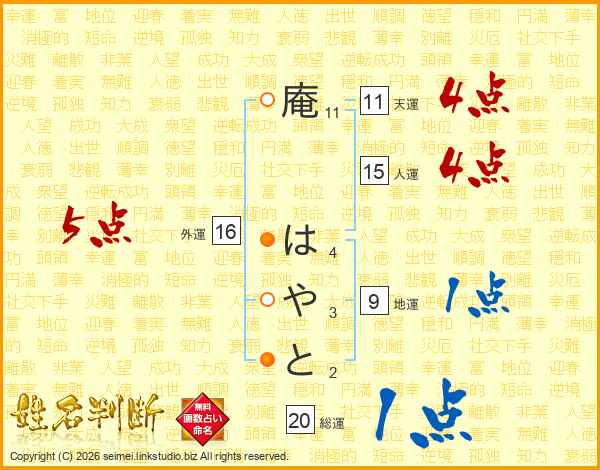 庵はやとさんの天運は11画の4点!