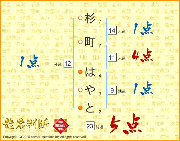 杉町はやとさんの人運は11画の4点!