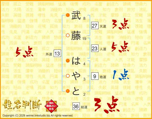 武藤はやとさんの総運は36画の3点!
