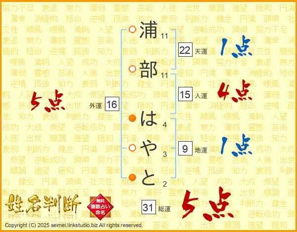 浦部はやとさんの総運は31画の5点!