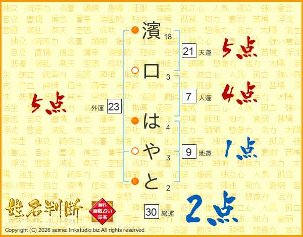 濱口はやとさんの総運は30画の2点!