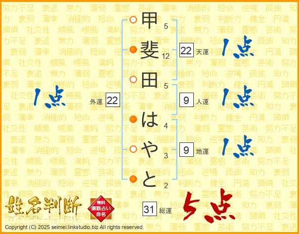 甲斐田はやとさんの総運は31画の5点!