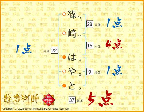 篠崎はやとさんの総運は37画の5点!