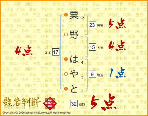 粟野はやとさんの総運は32画の5点!