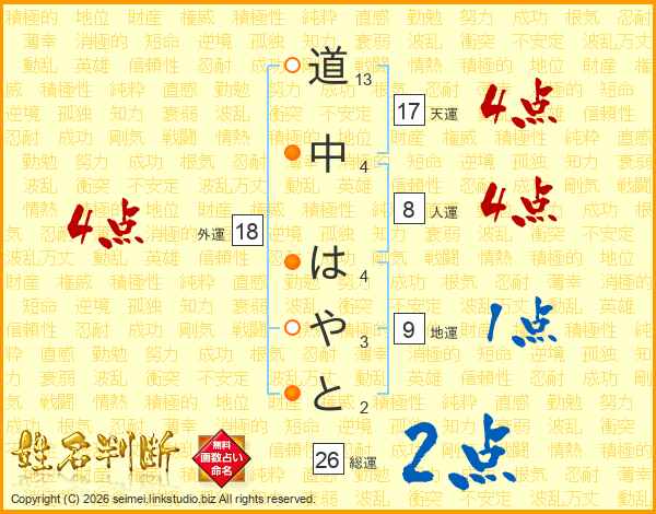 道中はやとさんの総運は26画の2点!