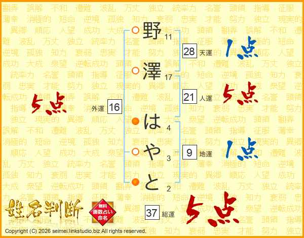 野澤はやとさんの総運は37画の5点!
