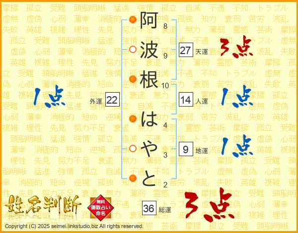 阿波根はやとさんの総運は36画の3点!