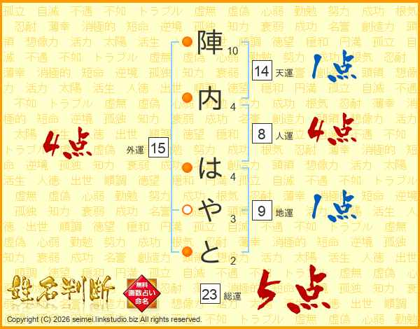 陣内はやとさんの総運は23画の5点!