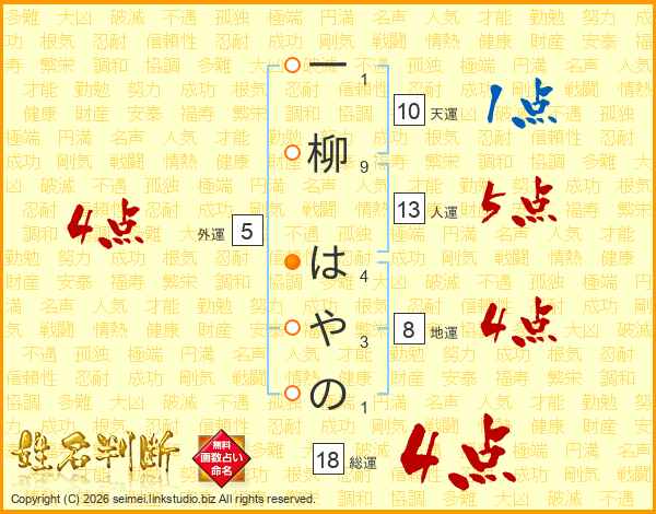 一柳はやのさんの総運は18画の4点!