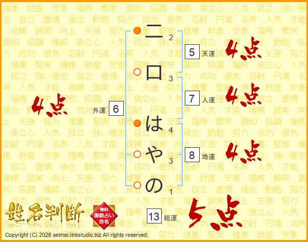 二口はやのさんの総運は13画の5点!