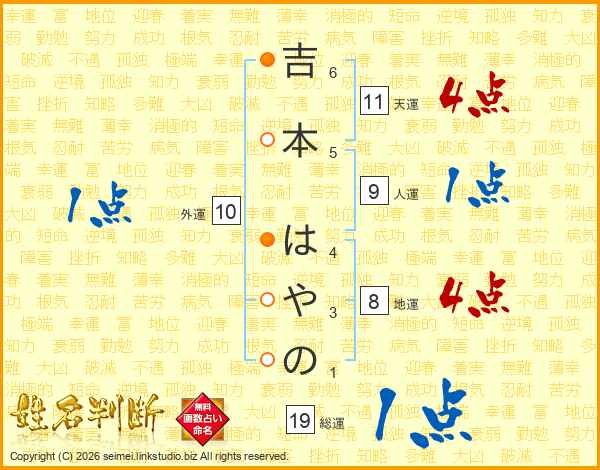 吉本はやのさんの天運は11画の4点!