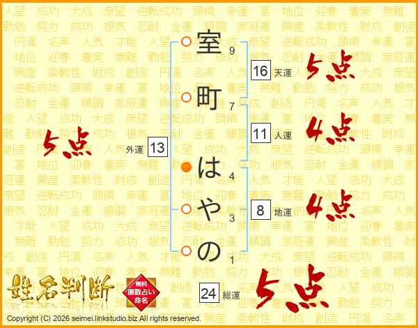 室町はやのさんの総運は24画の5点!