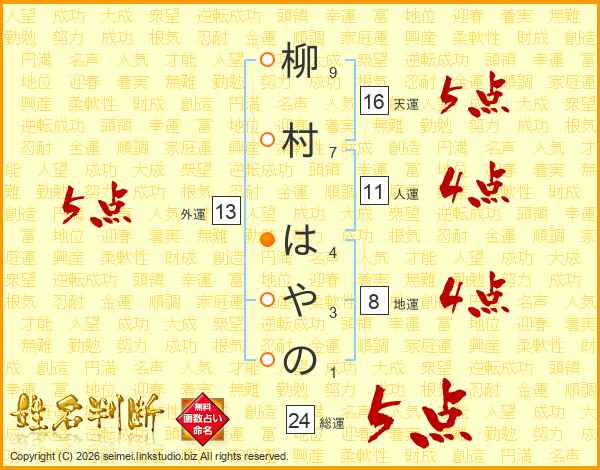 柳村はやのさんの外運は13画の5点!
