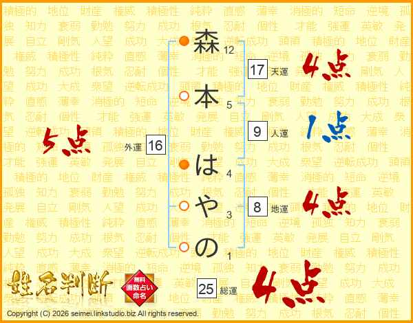 森本はやのさんの外運は16画の5点!