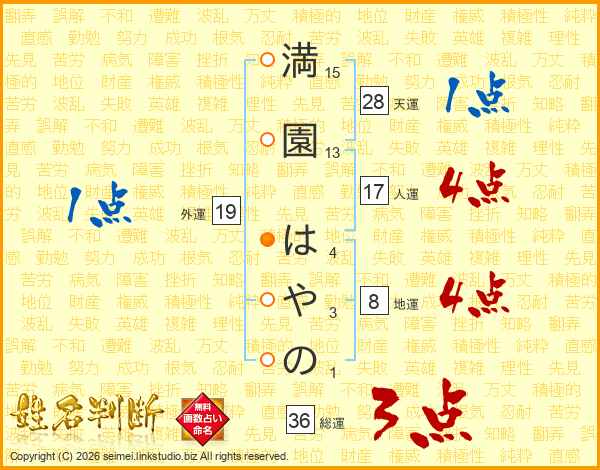 満園はやのさんの総運は36画の3点!