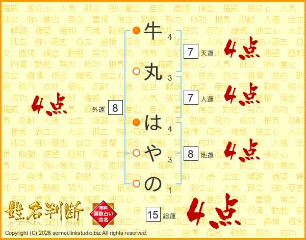 牛丸はやのさんの天運は7画の4点!