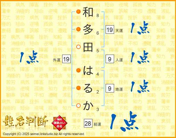 和多田はるかさんの総運は28画の1点!