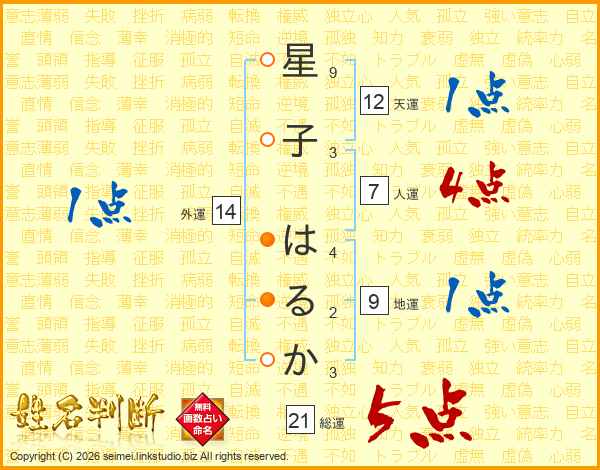 星子はるかさんの外運は14画の1点!
