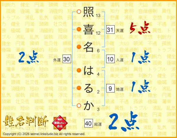 照(13画)喜(12画)名(6画) は(4画)る(2画)か(3画)