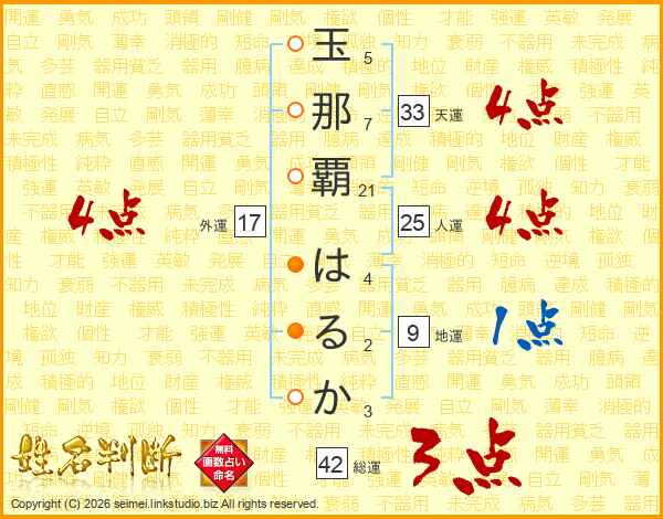 玉那覇はるかさんの総運は42画の3点!