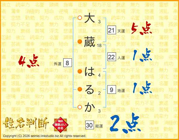 大蔵はるかさんの総運は30画の2点!