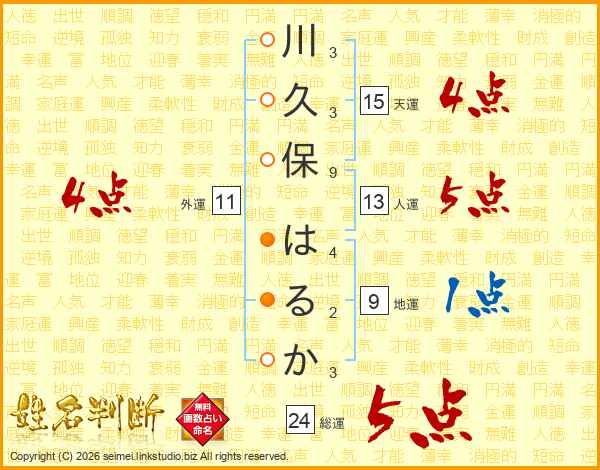 川久保はるかさんの総運は24画の5点!