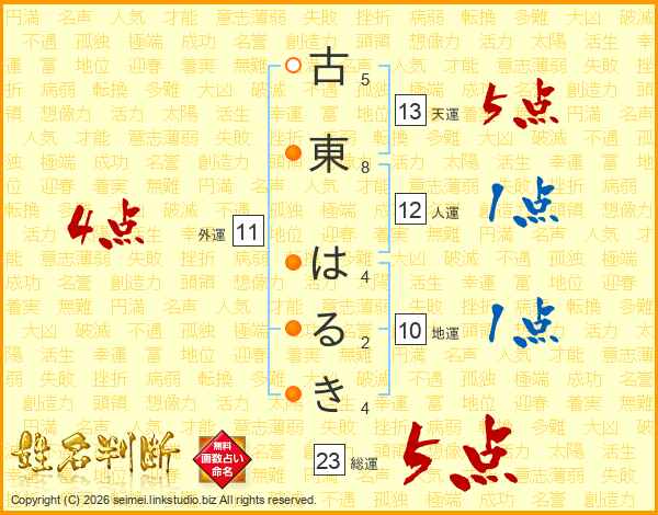 古東はるきさんの総運は23画の5点!