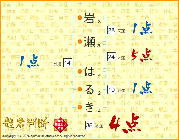 岩瀬はるきさんの総運は38画の4点!