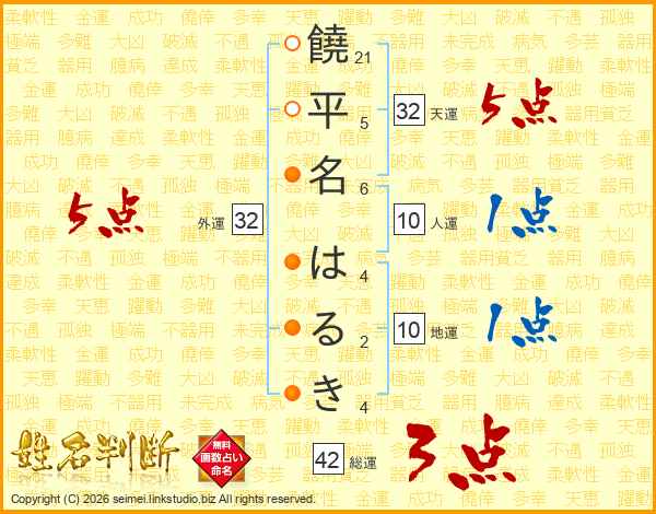 饒平名はるきさんの総運は42画の3点!
