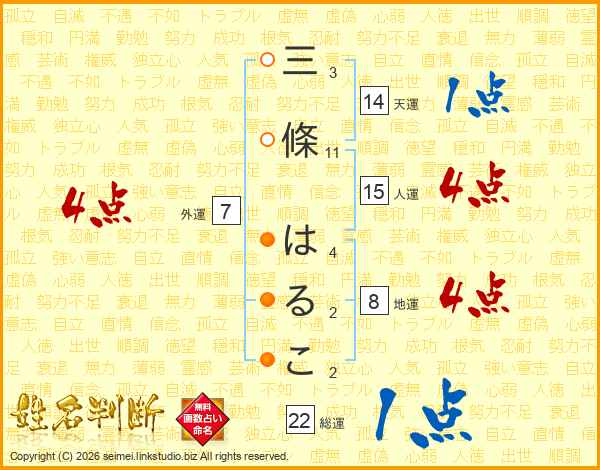 三條はるこさんの人運は15画の4点!
