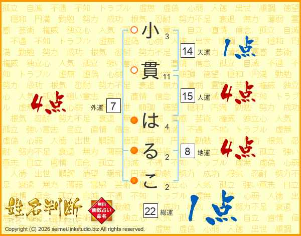 小貫はるこさんの総運は22画の1点!