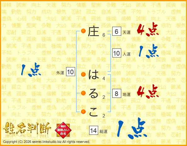 庄はるこさんの総運は14画の1点!